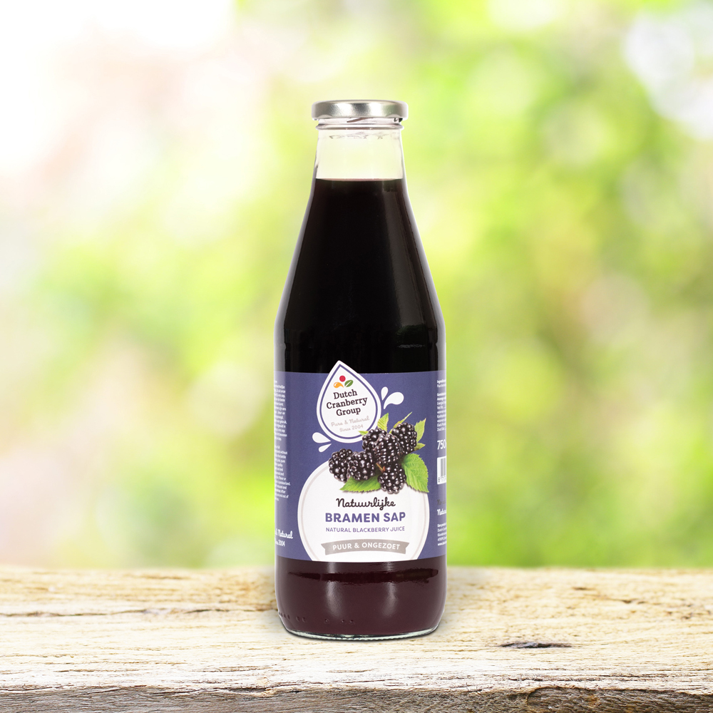Ons bramen sap is een volwaardig natuurproduct op ambachtelijke wijze bereid zonder enige toevoeging. Zo uit onze natuur in de fles en dat proeft U. Heerlijk vers sap, onverdund en niet gezoet, gemaakt van de beste kwaliteit bramen. Koel en puur gedronken komt ons sap het best tot zijn recht. De bramen zijn vers geperst en direct afgevuld. Geen geur-,  kleur- en smaakstoffen of conserveermiddel toegevoegd. Ons sap is gepasteuriseerd. Schudden voor gebruik.