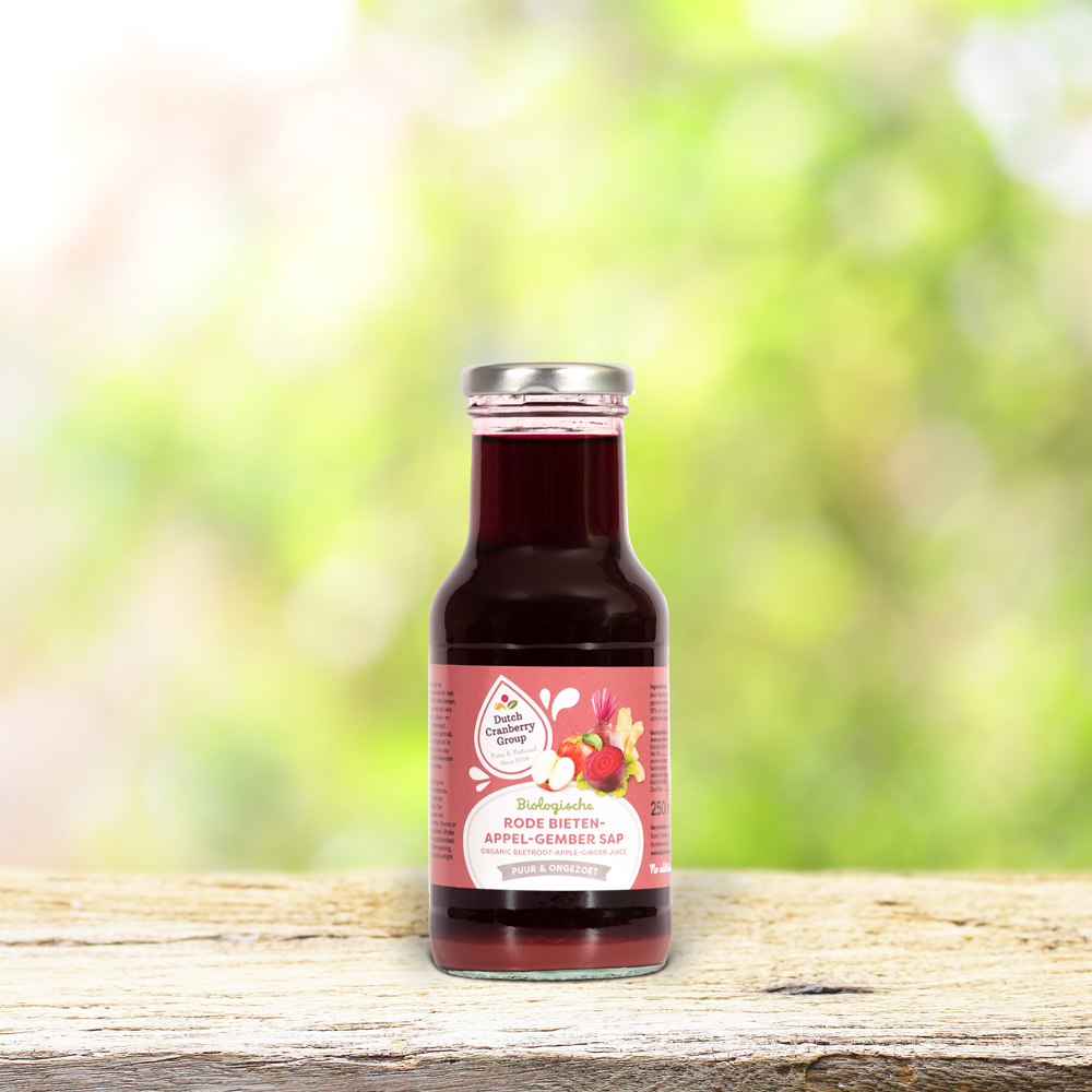 Heerlijk vers sap op ambachtelijke wijze bereid, onverdund en niet gezoet, gemaakt van de beste kwaliteit rode bieten, appels en gember. Het fruit en de groente zijn vers geperst en direct afgevuld. Geen geur -, kleur- en smaakstoffen of conserveermiddel toegevoegd. Ons sap is gepasteuriseerd. Schudden voor gebruik.